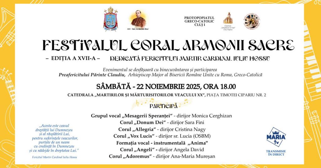 Festivalul Coral „Armonii Sacre” – ediția a XVII-a dedicată Fericitului Cardinal Iuliu Hossu